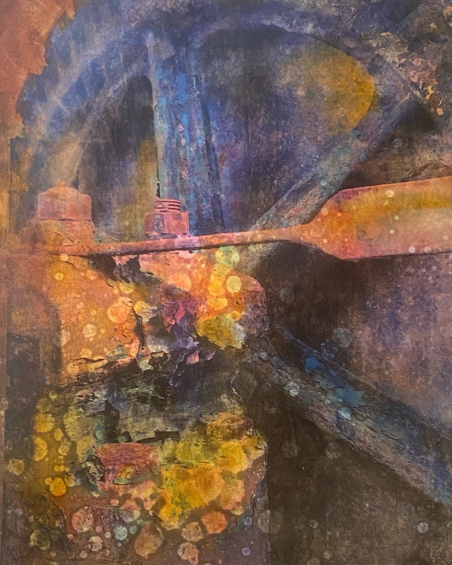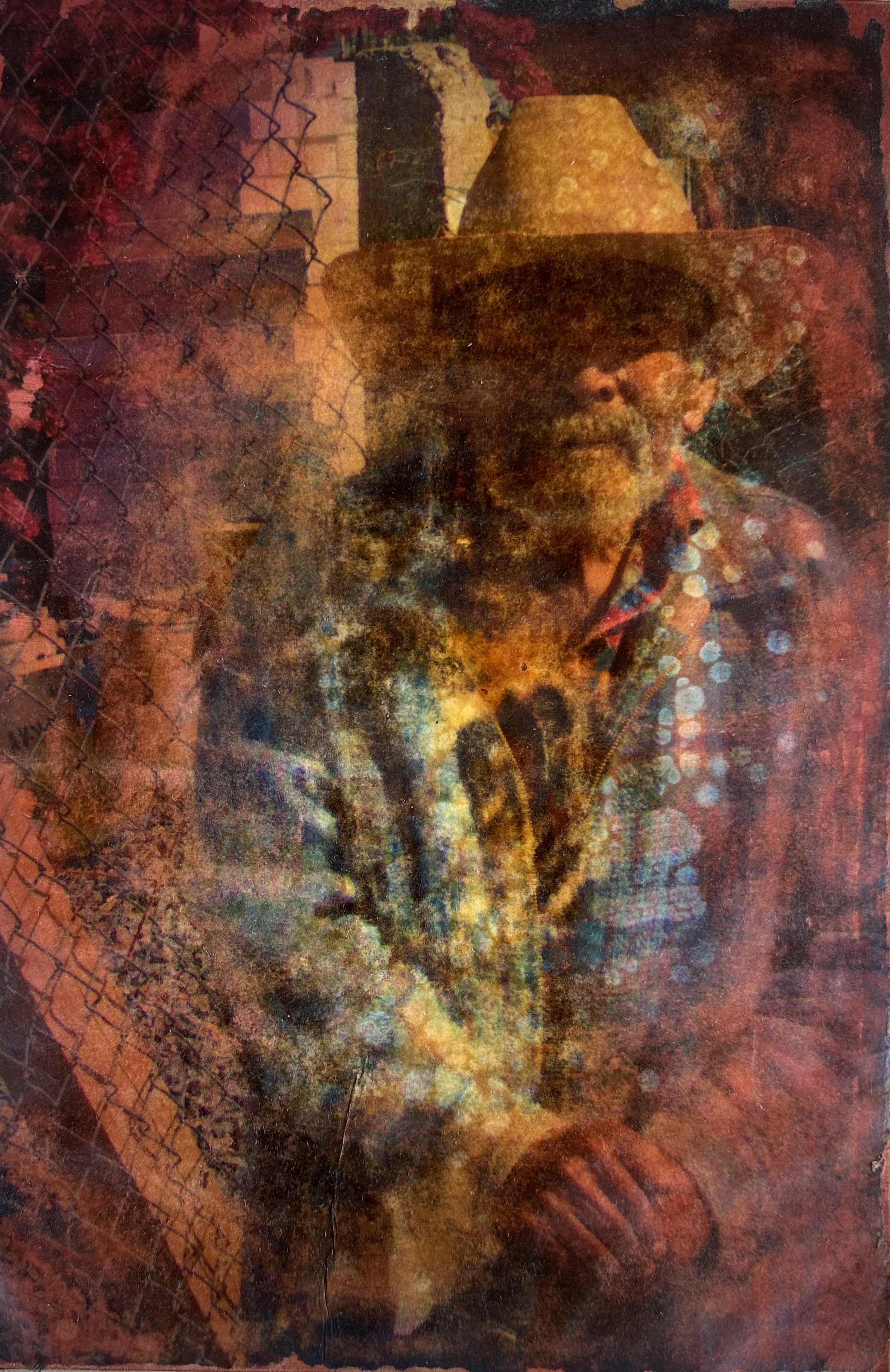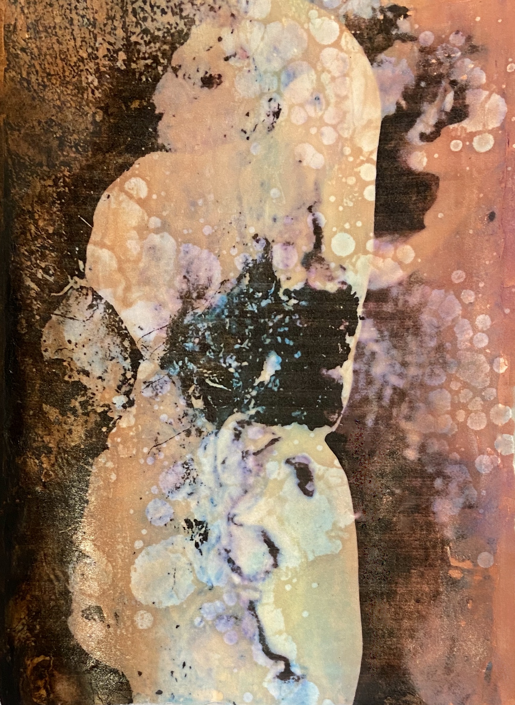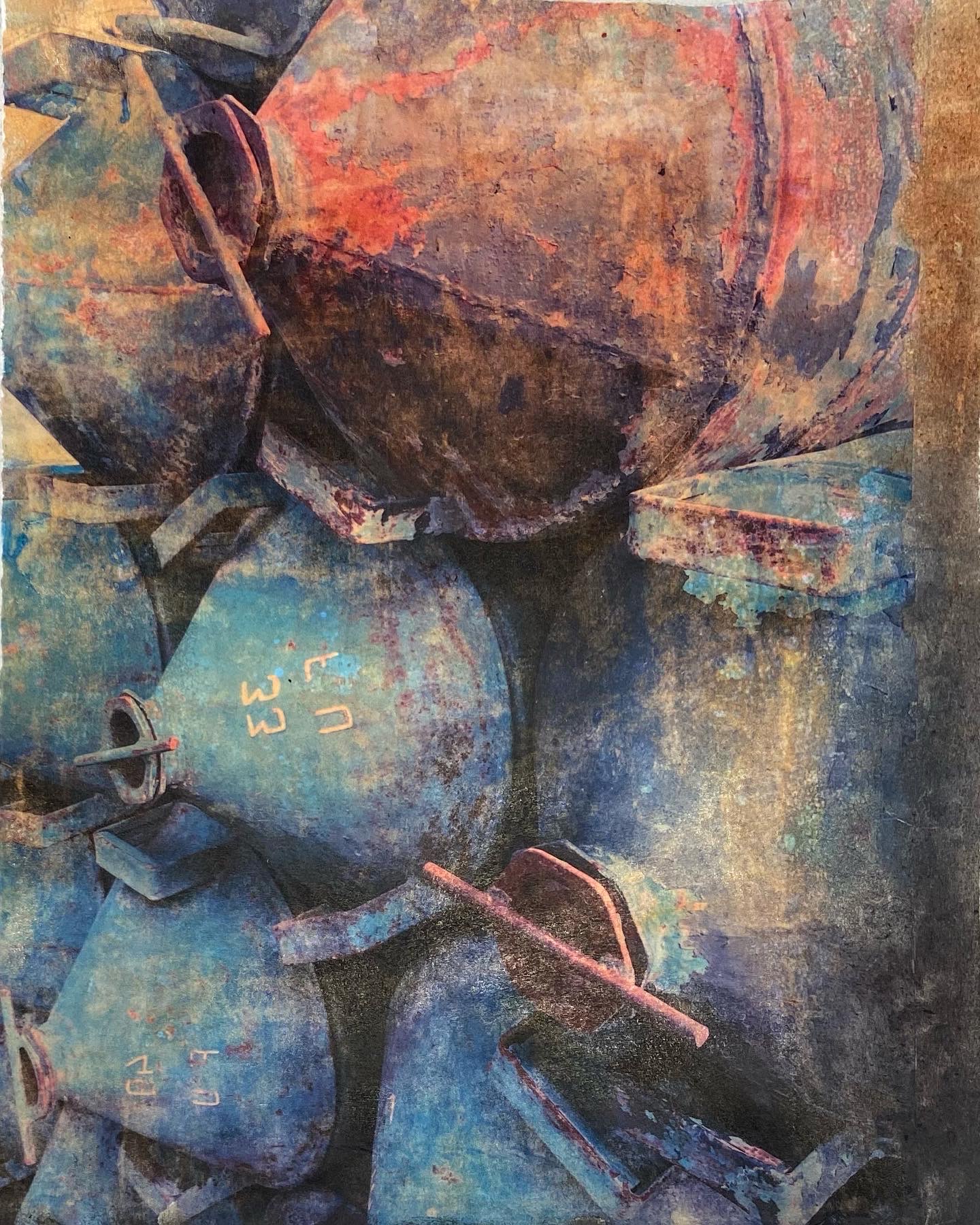This series of work is a mixed media fusion of monotype printmaking, original photography transfer, and encaustic oil stick painting. Various subject matter is explored within these exhibitions.