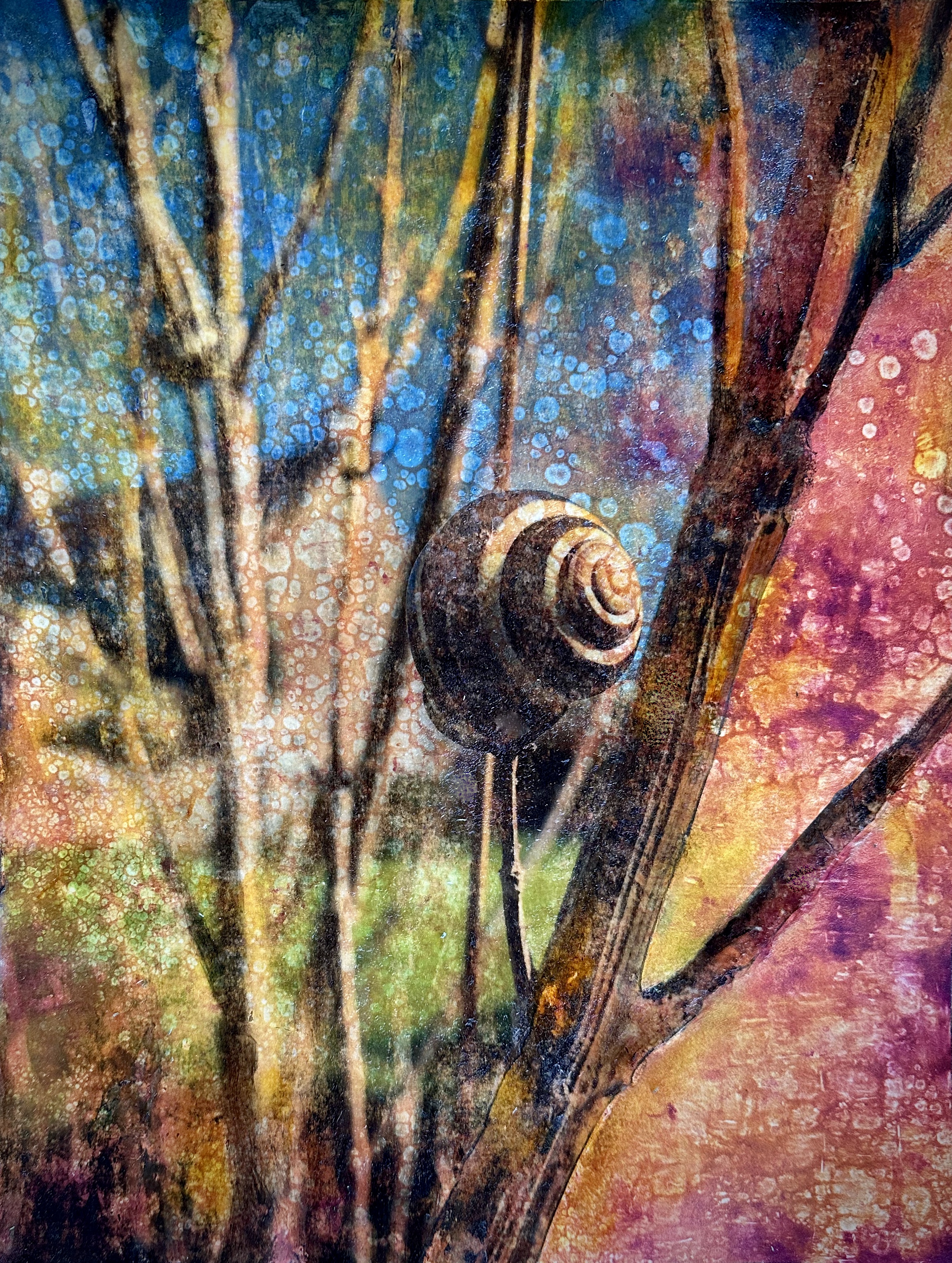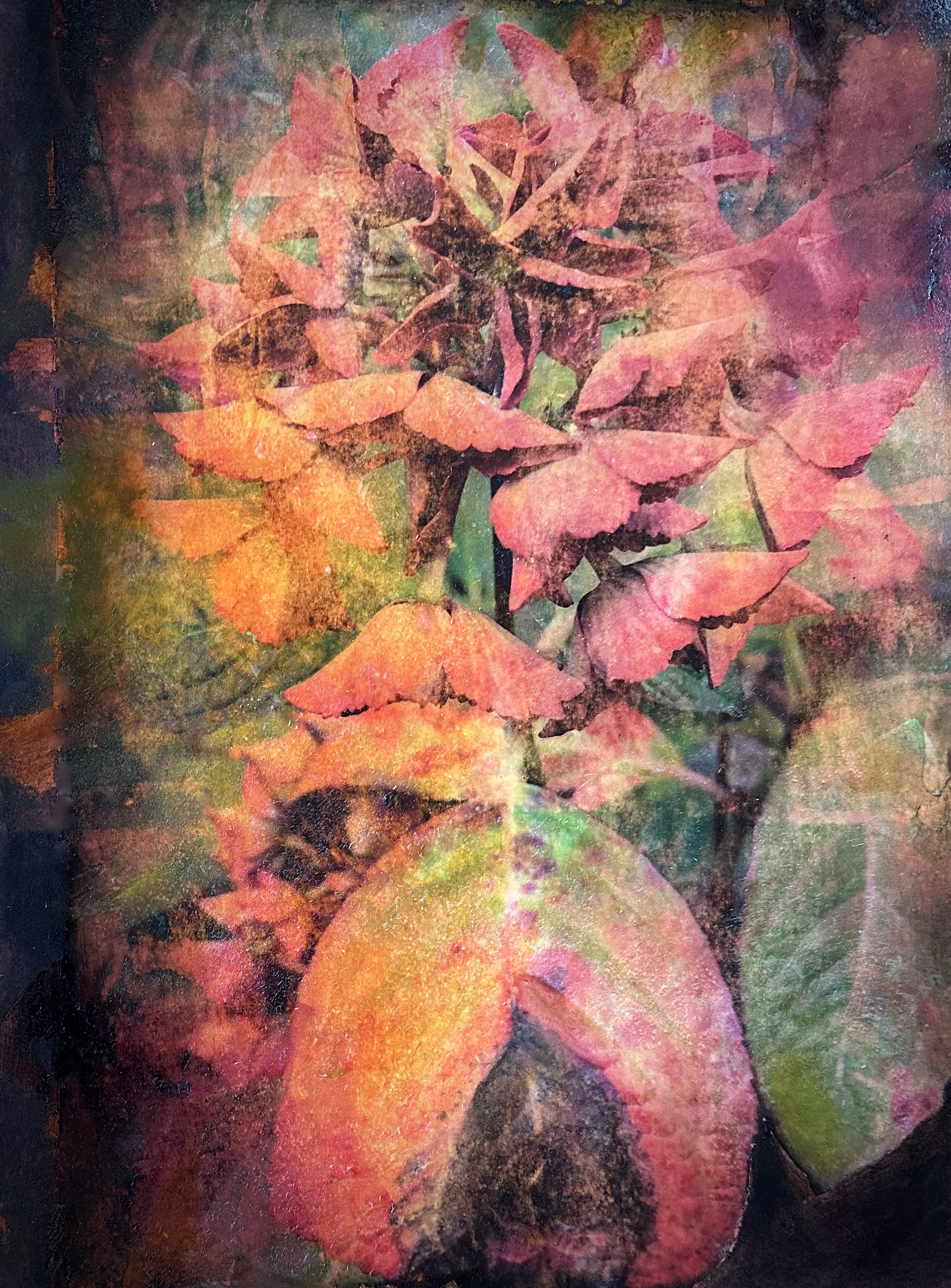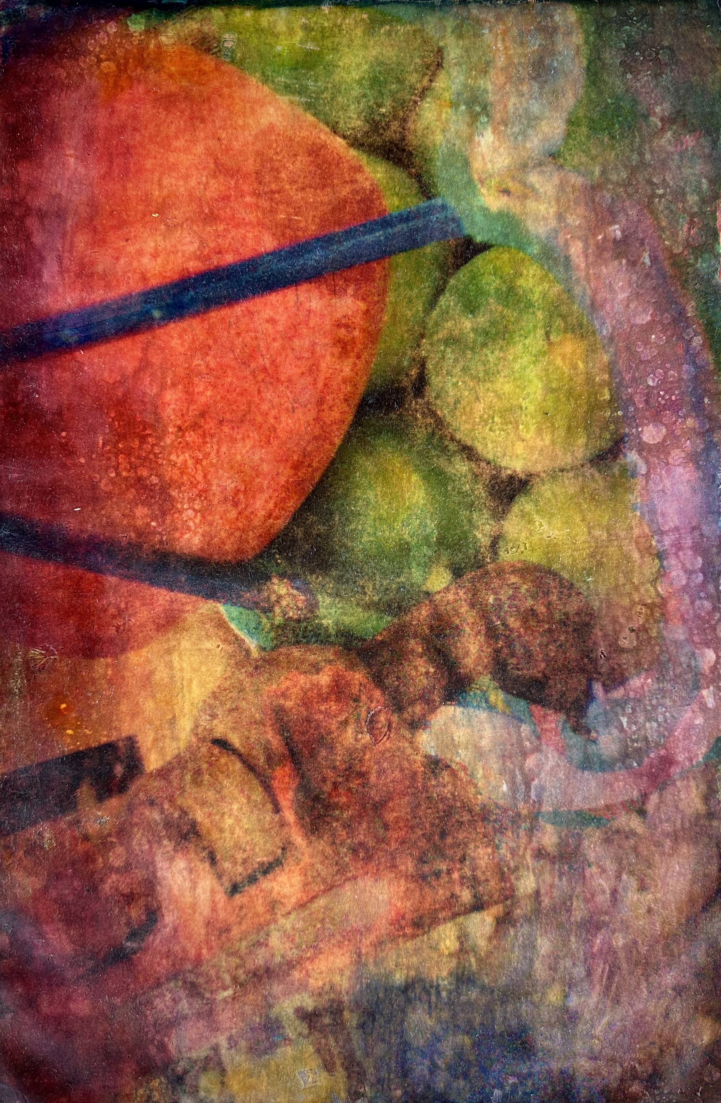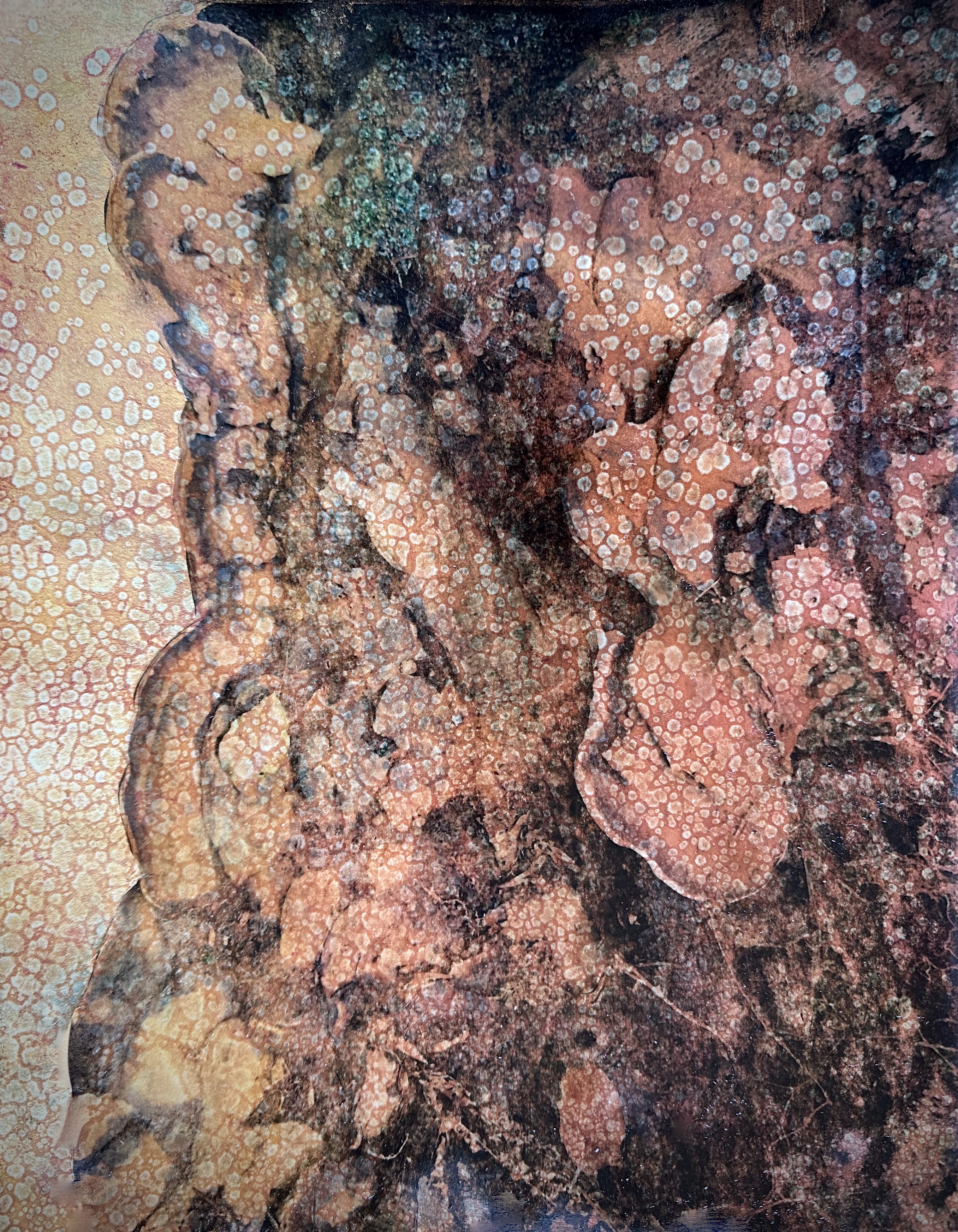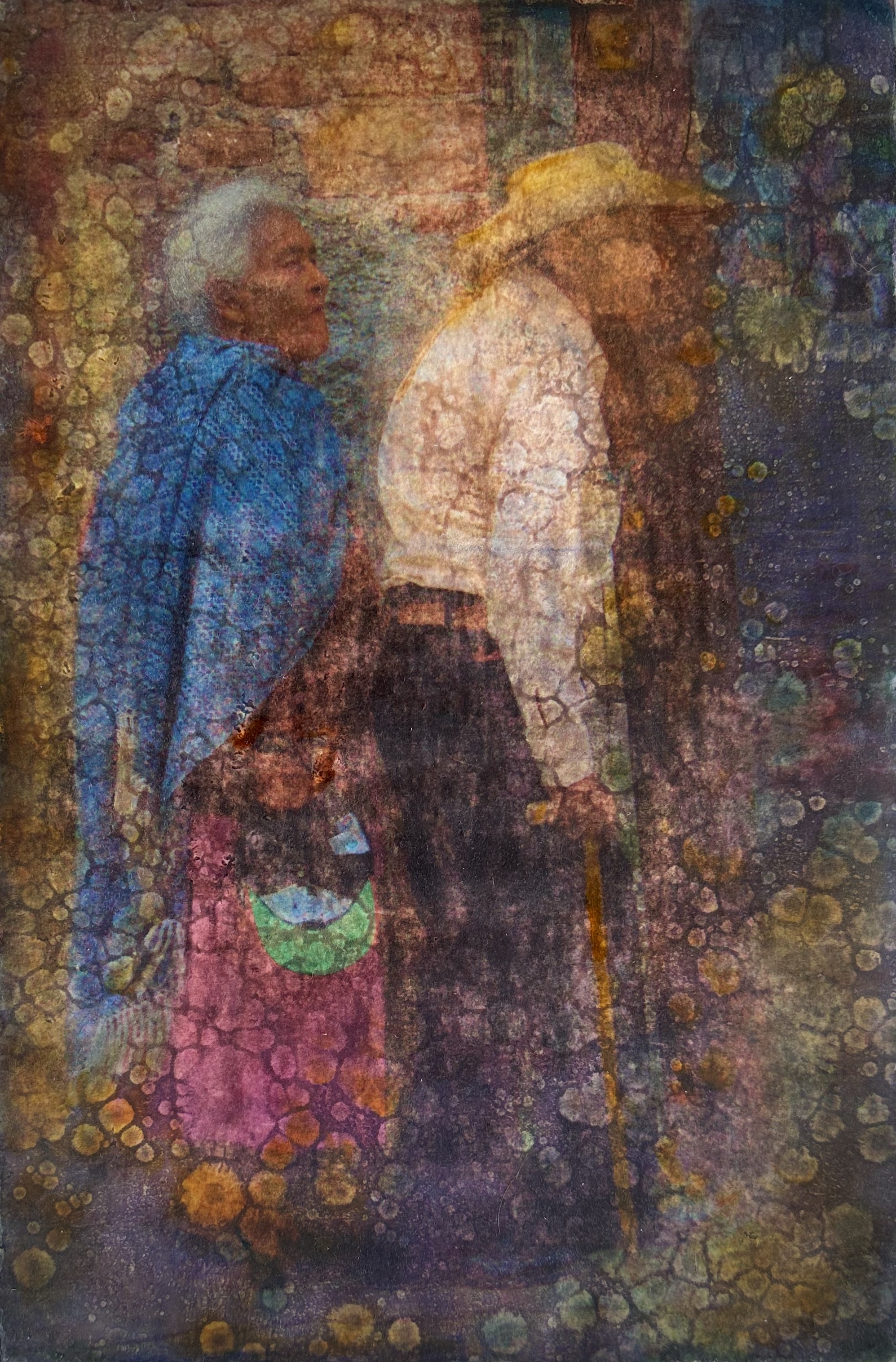 This series of work is a mixed media fusion of monotype printmaking, original photography transfer, and encaustic oil stick painting. Various subject matter is explored within these exhibitions.