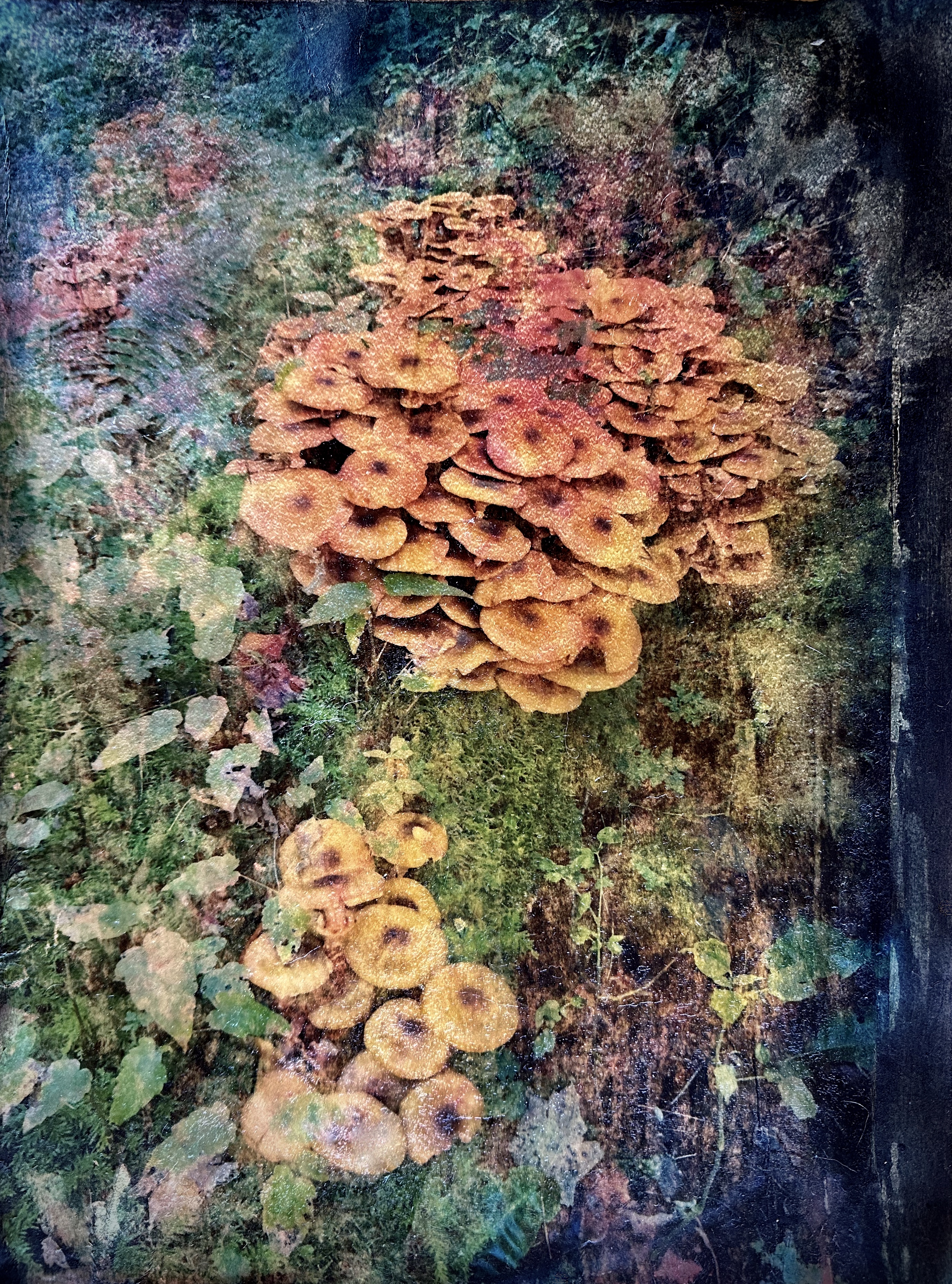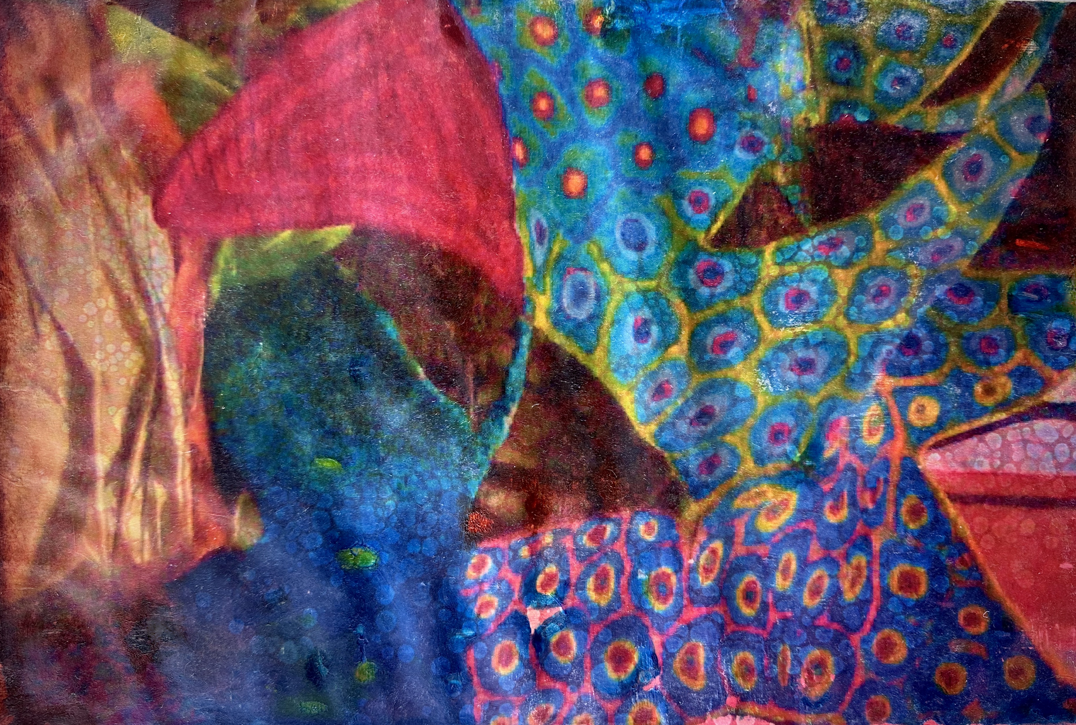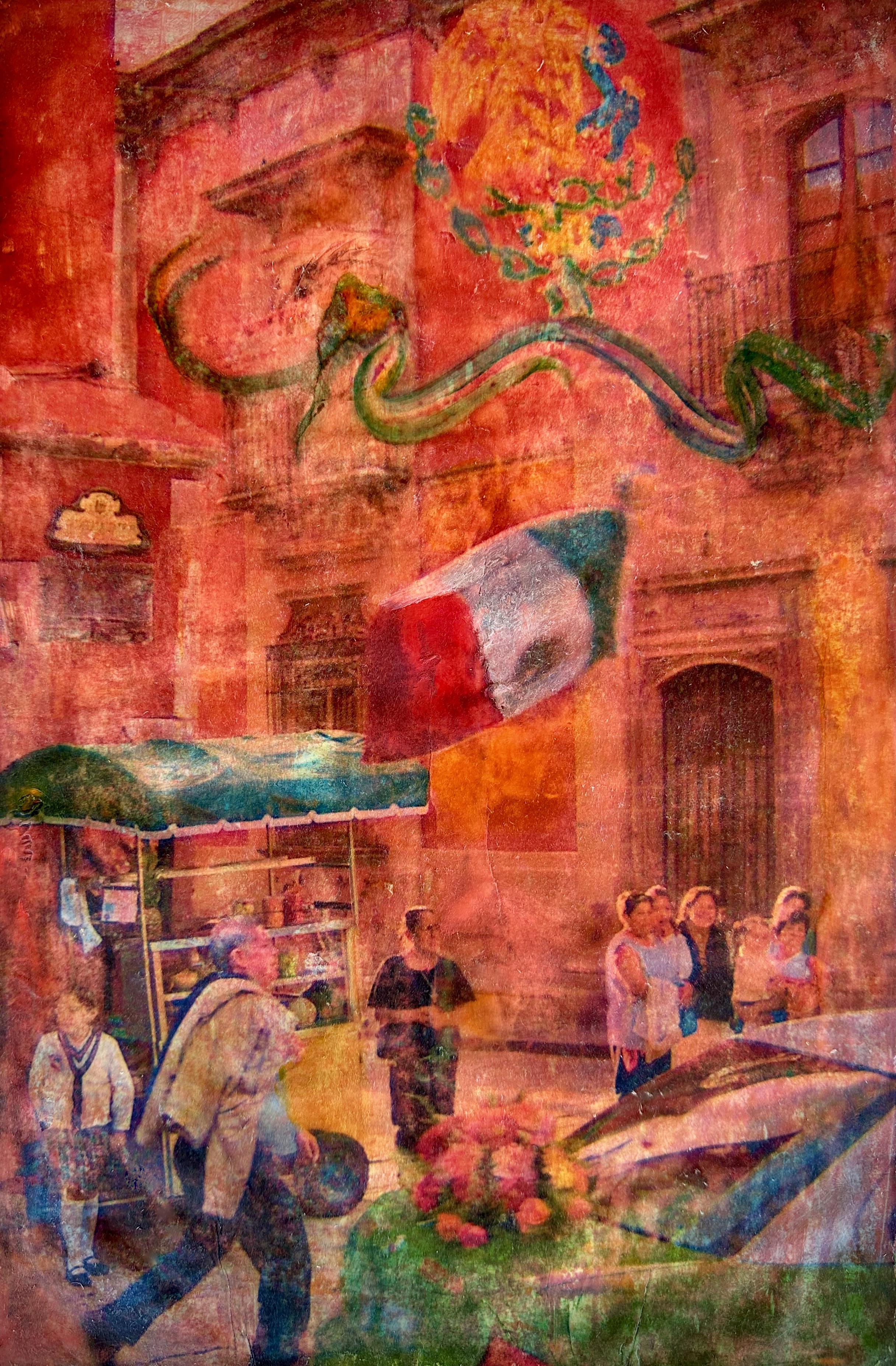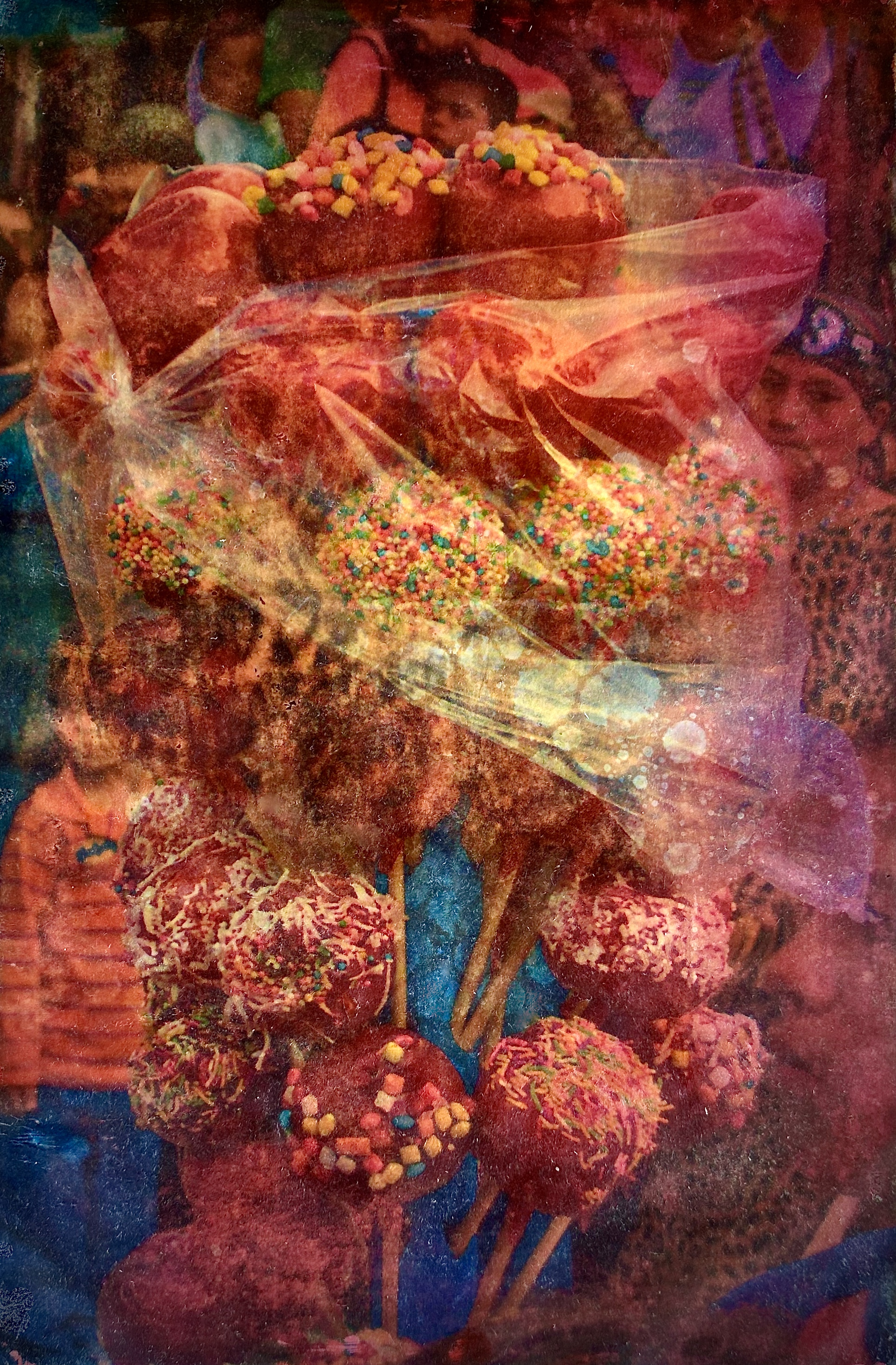 This series of work is a mixed media fusion of monotype printmaking, original photography transfer, and encaustic oil stick painting. Various subject matter is explored within these exhibitions.