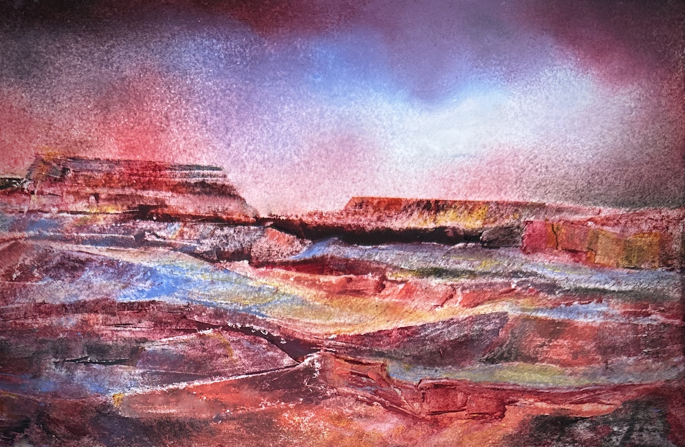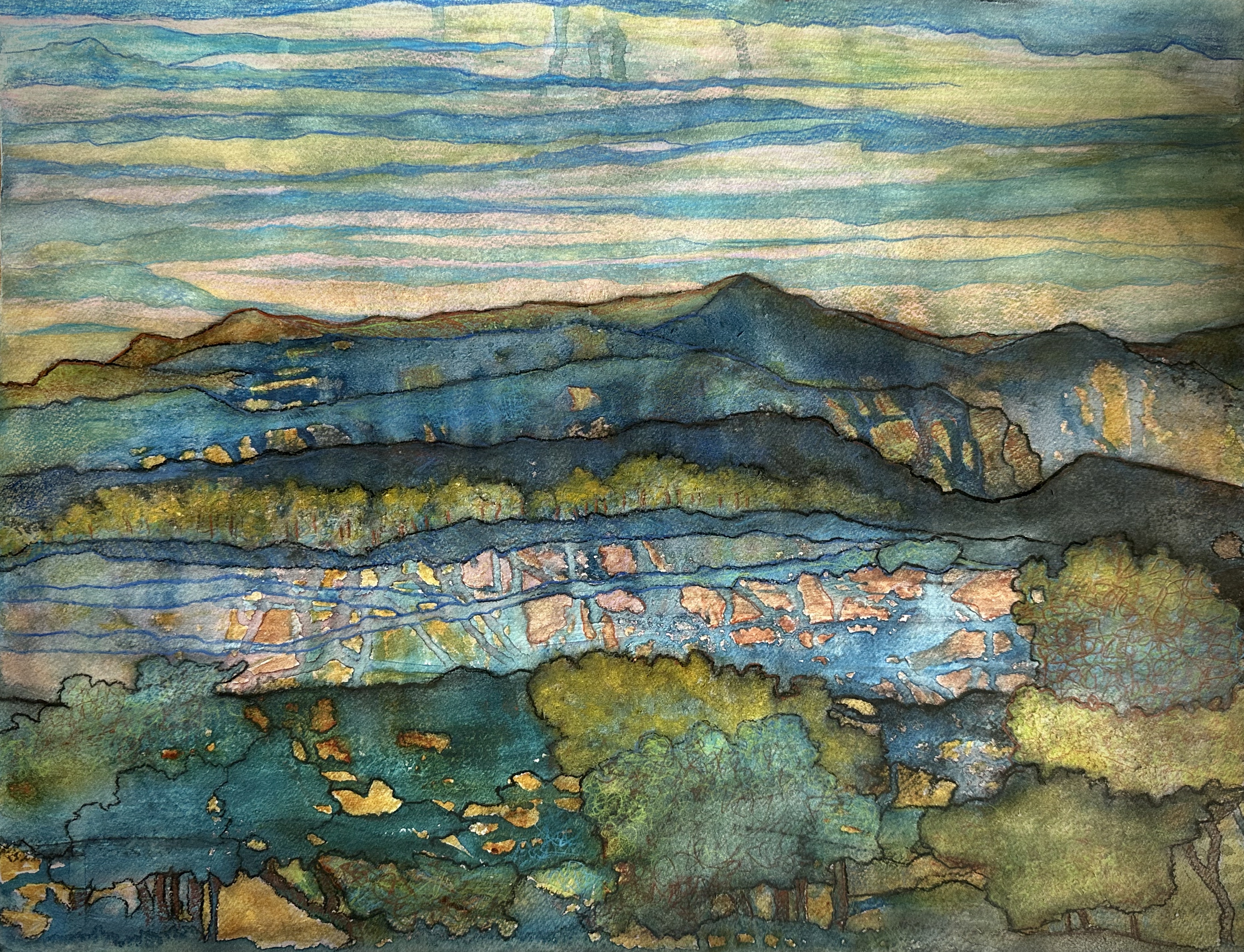 Oil, Acrylic, Watercolor, Encaustic. Jen paints in all mediums and sizes, on paper, board or canvas. Inspiration is found from direct experiences and memories of land, sea, sky, mountains in New Mexico, California and beyond. Also inspired by the spirit of the creative process itself, abstract images emerge through experimentation.